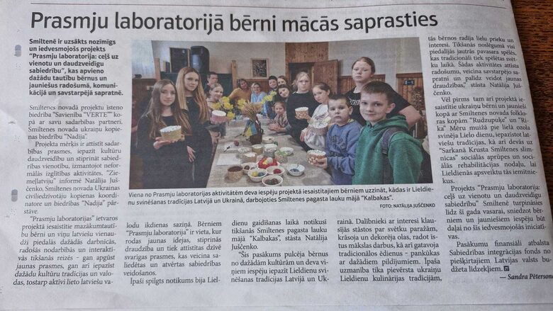 Smiltenē ir uzsāktas projekta “Prasmju laboratorija: Ceļš uz vienotu un daudzveidīgu sabiedrību” (Nr. 2025.LV/MTSP/018) prasmju laboratorijas nodarbības bērniem un jauniešiem. Nodarbības pulcē dalībniekus kopīgās radošās un izglītojošās aktivitātēs, kurās tiek veicināta savstarpējā sadarbība, cieņa un izpratne par sabiedrības daudzveidību.